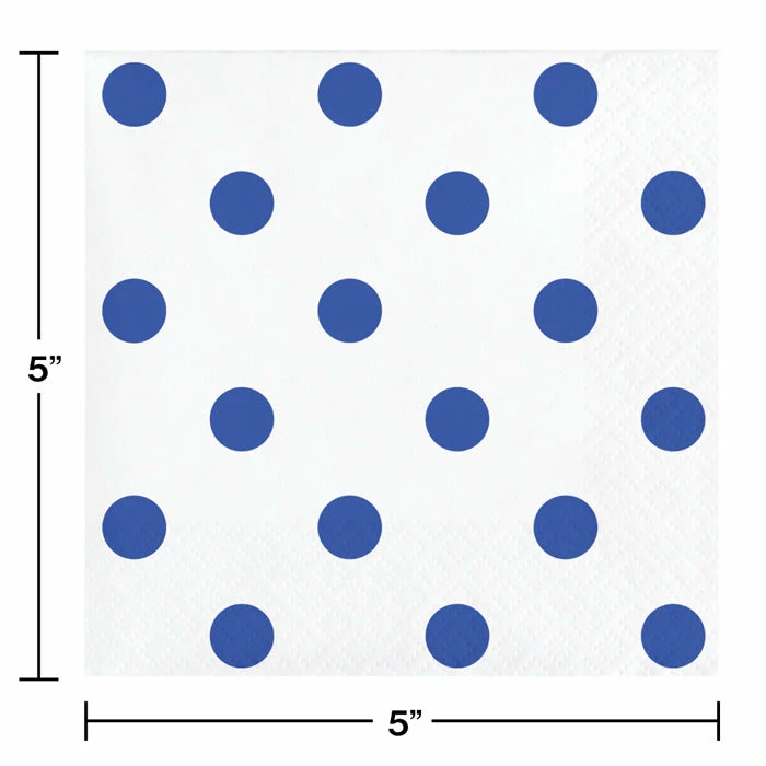 Details: Treat your guests to a drink served on a napkin that pops with color when you use the Cobalt Blue Polka Dots and Stripes Beverage Napkins. These 2-ply paper beverage napkins measure 5″ and feature a print of cobalt blue polka dots set against a white background. These disposable paper napkins coordinate with all Cobalt Blue Polka Dots and Stripes party supplies. With discount pricing and great quality our Cobalt Blue Polka Dots and Stripes Beverage Napkins are perfect for event planners caterers and home hostesses alike. Approximate Size: 5″ x 5″ 1/4 Fold. Material: 2-Ply Tissue