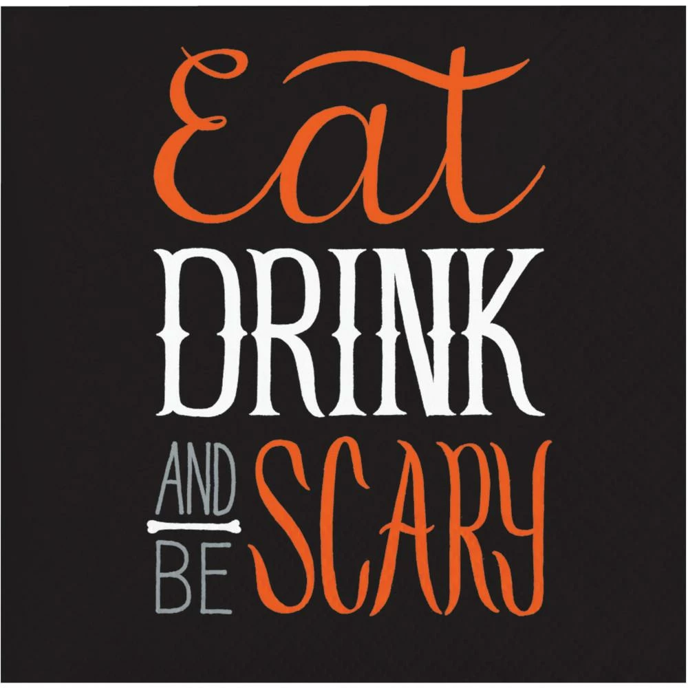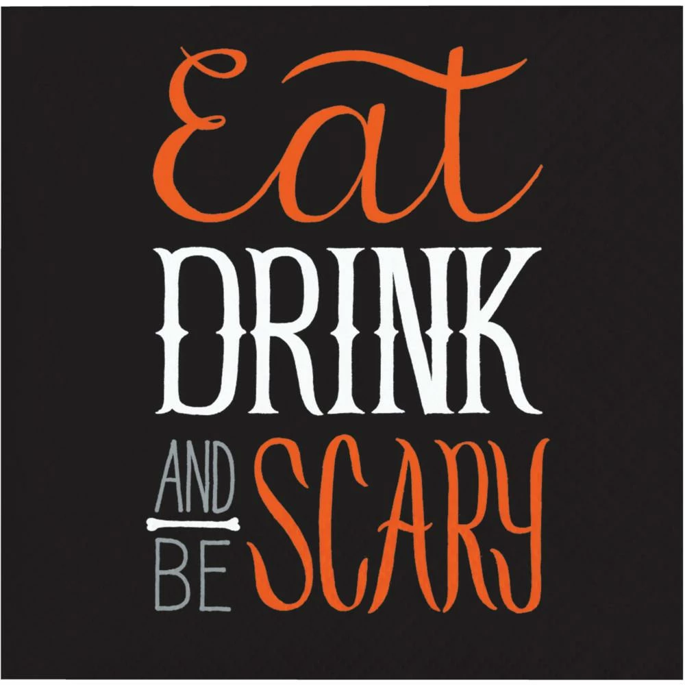 Details: ?áSave at PartyDecorations.com. Treat your guests to the witches brew when you serve it on an Eat, Drink and Be Scary Halloween Beverage Napkins. These 2-ply cocktail napkins measure 5″ and feature the words ?ǣEat, Drink And Be Scary” with a black, white, and orange theme. Sold in packs of 192, these disposable paper napkins coordinate with all Humorous Halloween party supplies. With wholesale pricing and bulk quantities, our Eat, Drink and Be Scary Halloween Beverage Napkins 192 ct are perfect for event planners, caterers, and home hostesses alike.