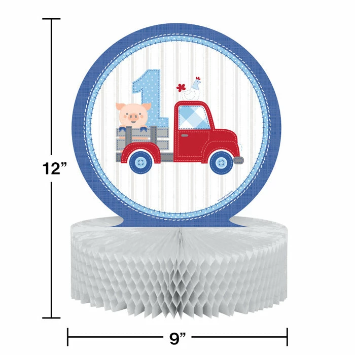 Light up your table with this Farmhouse 1st Birthday Boy Centerpiece. Featuring a red truck with an adorable piglet in the back this centerpiece is sure to grab your guests attention. Measuring 9″ x 12″ this centerpiece can be paired with any other Farmhouse 1st Birthday Boy party supplies. With wholesale pricing and bulk quantities our Farmhouse 1st Birthday Boy Centerpieces 6 ct are perfect for event planners caterers and home hostesses alike.. Size: 9″ x 12″. Material: Paper