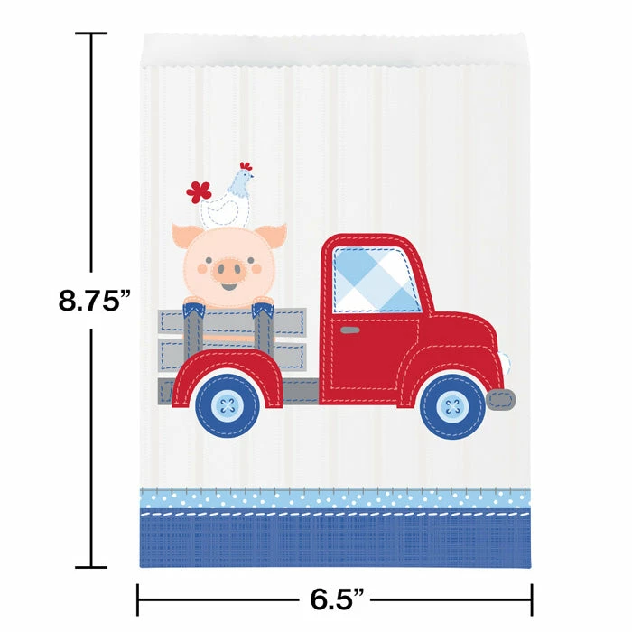 Send your guests home with something to remember in these Farmhouse 1st Birthday Boy Paper Treat Bags. Featuring a red truck with a piglet sitting in the back these treat bags are perfect for filling with any treats or small goodies. Measuring 6.5″ x 8.75″ these treat bags pair well with any other Farmhouse 1st Birthday Boy party supplies. With wholesale pricing and bulk quantities our Farmhouse 1st Birthday Boy Paper Treat Bags 120 ct are perfect for event planners caterers and home hostesses alike.. Size: 6.5″ x 8.75″. Material: Paper