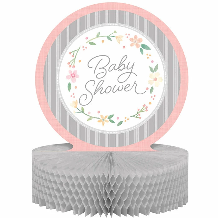 Details: Your table will be complete and your guests impressed when you use the charming Country Floral Baby Shower Centerpiece. The centerpiece measures 9″ x 12″ and features a grey and pink theme with a floral design. The table centerpiece coordinates with all Country Floral Baby Shower party supplies. With discount pricing and great quality our Country Floral Baby Shower Centerpieces are perfect for event planners caterers and home hostesses alike. Approximate Size: 9″ x 12″. Material: Paper
