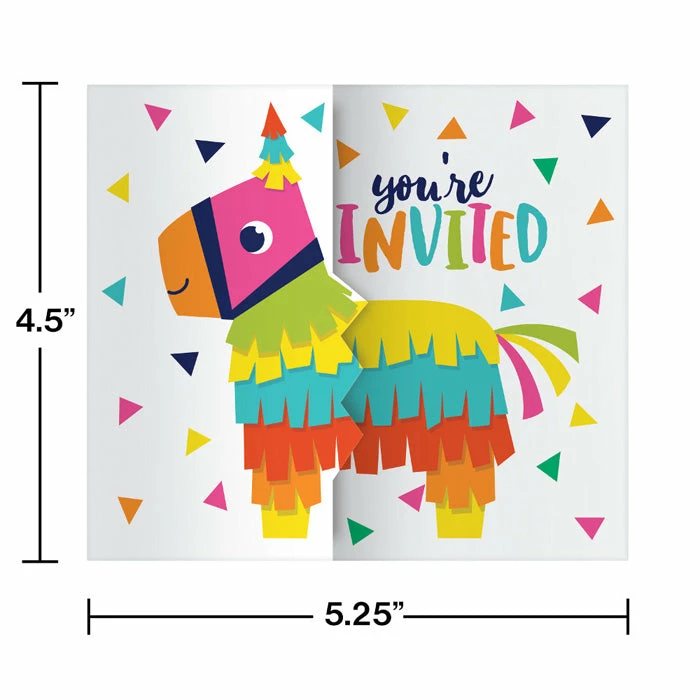 Your guests will immediately know they have been invited to a lively party when you send out the Fiesta Fun Invitations. The paper invitations measure 5.25″ x 4.5″ and features a multicolored donkey Pinata surrounded by confetti. The paper invitations coordinates with all Fiesta Fun party supplies. With wholesale pricing and bulk quantities our Fiesta Fun Invitations 48 ct are perfect for event planners caterers and home hostesses alike.. Size: 5.25″ x 4.5″. Material: Paper