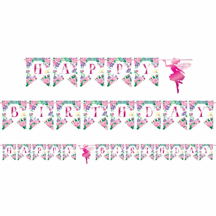 Floral Fairy Sparkle Banner (12/Case) – You get 1 per package and 12 packages in each case for a total count of 12/case! Shop and save on on more Floral Fairy Sparkle Party Theme at PartyDecorations.com!