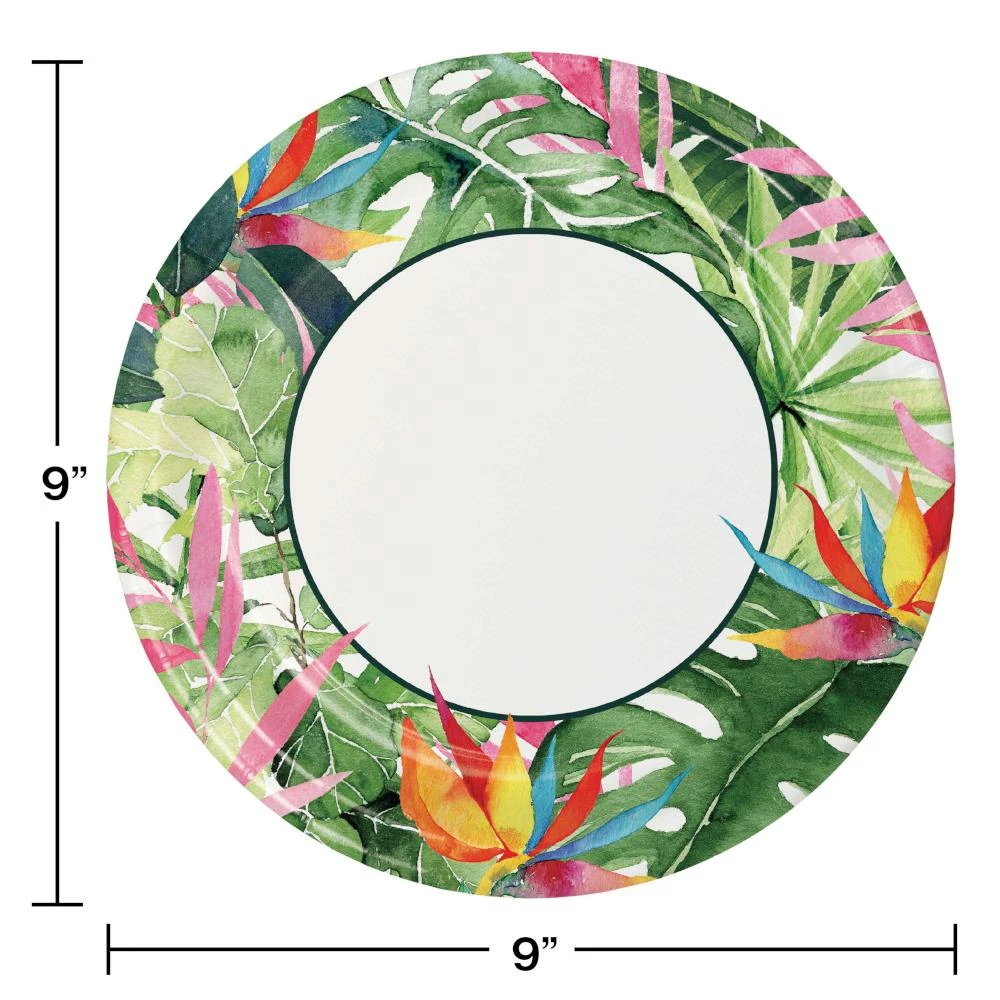Details: Whether it’s smoked pork or jerk chicken, all food will look delicious on the Floral Paradise Paper Plates. These sturdy paper plates measure 9″ and feature multiple tropical flowers with a green, yellow, pink, and blue theme. Sold in packs of 8, these disposable paper plates coordinate with all Floral Paradise party supplies. Save more on party decorations, party favors and party supplies at PartyDecorations.com!. Material: Paper Boardstock. Approximate Size/Dimensions (inches): 8.75 x 8.75.