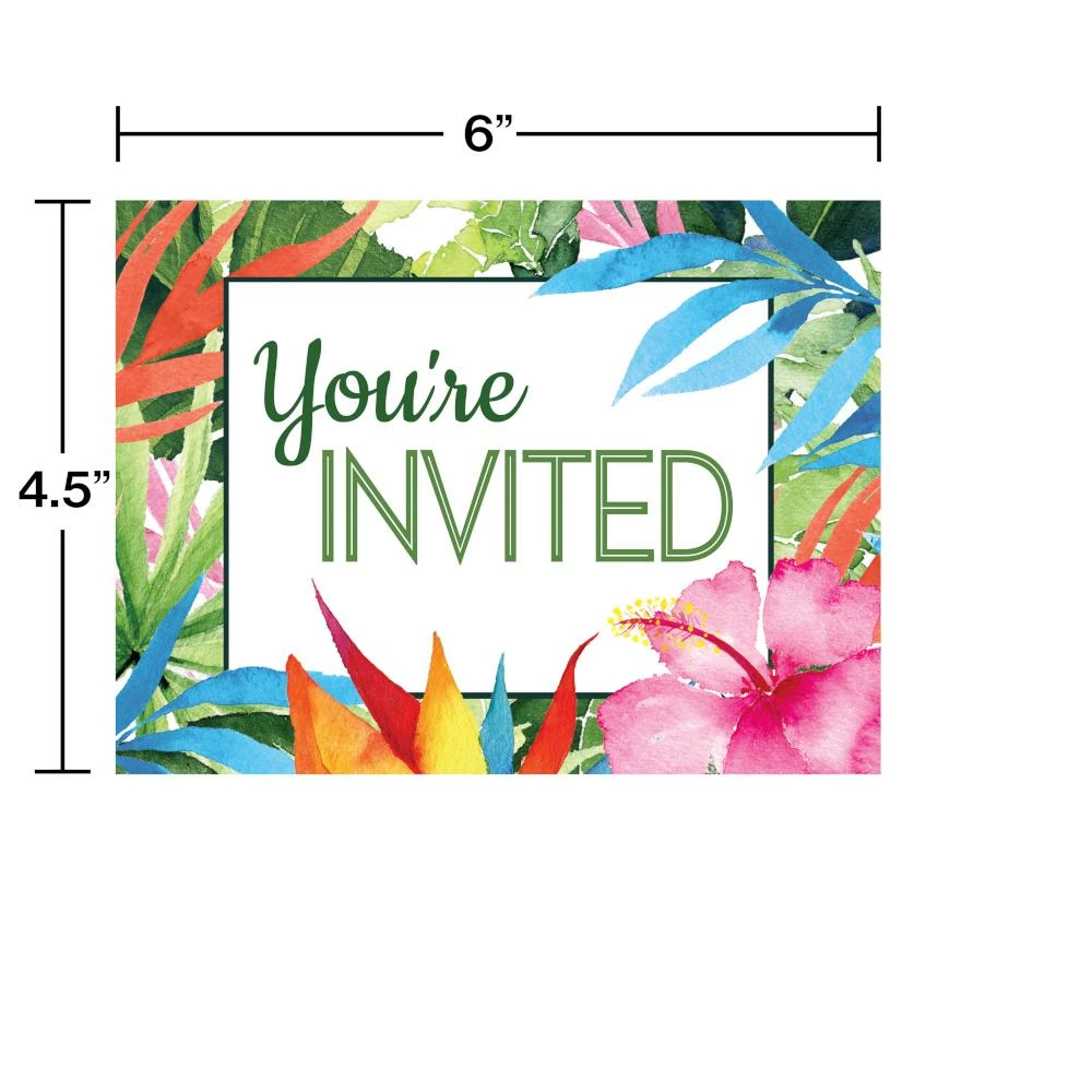 Details: The Floral Paradise Invitations will let your friends know they’ve been invited to an exciting tropical bash. These paper cards measure 6″ x 4.5″ and feature multiple tropical flowers and the words “You’re Invited” with a green, yellow, pink, and blue theme. Sold in packs of 8, these paper invitations coordinate with all Floral Paradise party supplies. Save more on party decorations, party favors and party supplies at PartyDecorations.com!. Material: Paper. Approximate Size/Dimensions (inches): 4.5 x 6.