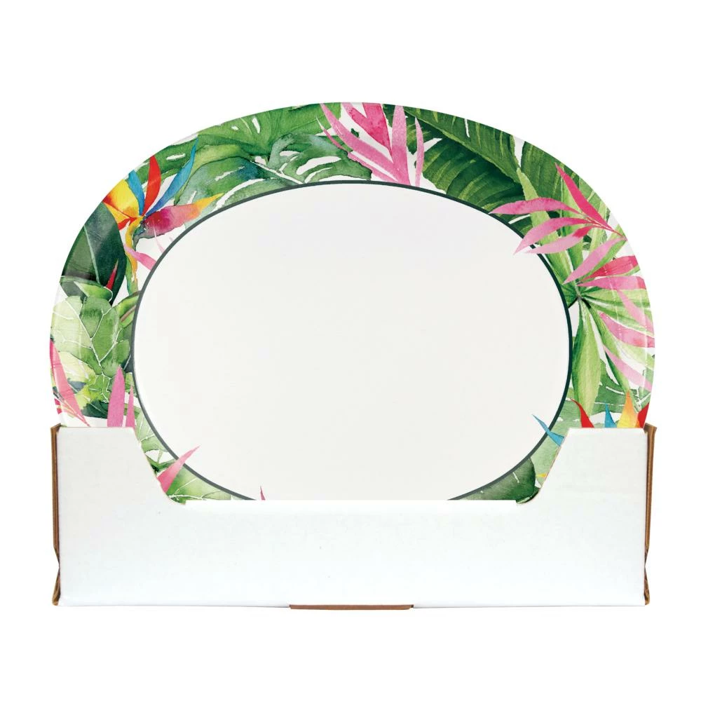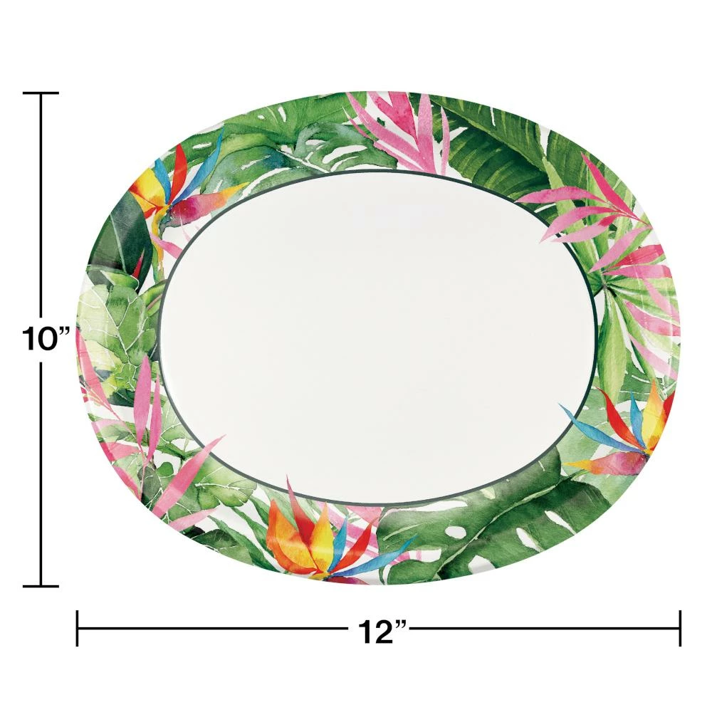 Details: The beautiful Floral Paradise Oval Paper Plates are perfect for all your luau banquet favorites. These sturdy paper plates measure 10″ x 12″ and feature multiple tropical flowers with a green, yellow, pink, and blue theme. Sold in packs of 8, these disposable paper plates coordinate with all Floral Paradise party supplies. Save more on party decorations, party favors and party supplies at PartyDecorations.com!. Material: Paper Boardstock. Approximate Size/Dimensions (inches): 10 x 12 x 1.