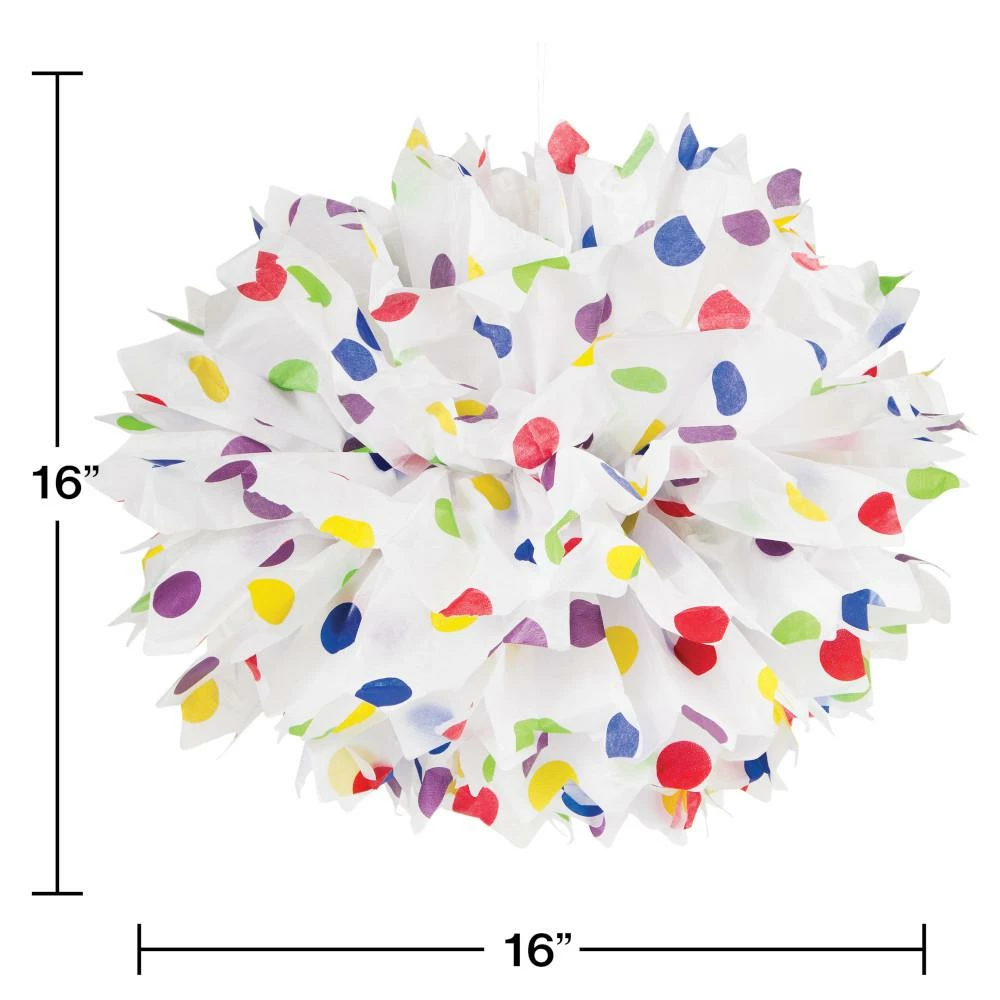Fluff up your party decoration using these Multicolor Tissue Balls. Made with premium strength tissue paper, the Multi-color makes these decorations a great hanging party item to display at your next celebration! These tissue balls measure 16″. With wholesale pricing and bulk quantities, our Multicolor Polka Dot Tissue Balls 36 ct are perfect for event planners, caterers, and home hostesses alike.