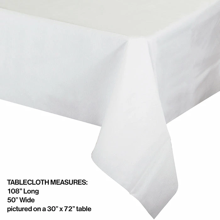 Details: It looks like linen, feels like linen, but has the convenience of being a disposable paper product. The White Better than Linen table cover has a textile-like surface and drape, with an ultra-soft yet thick feel. Constructed with air-laid tissue paper, so it is substantial, porous and cushiony, the table cover has good water absorption that makes it much stronger compared to normal tissue. The standard banquet size table cover measures 50″ x 108″ and works for literally any occasion including birthdays, bridal and baby showers, weddings, holiday celebrations, graduation parties and more! Each table cover is packaged individually with package dimensions measuring 17.25″ x 8.5″ x 0.25″. The table cover is proudly made in the USA. You get one Form & Function – White Paper Tablecover 50″ X 108″ for this price. Approximate Dimensions: 108 in x 50 in