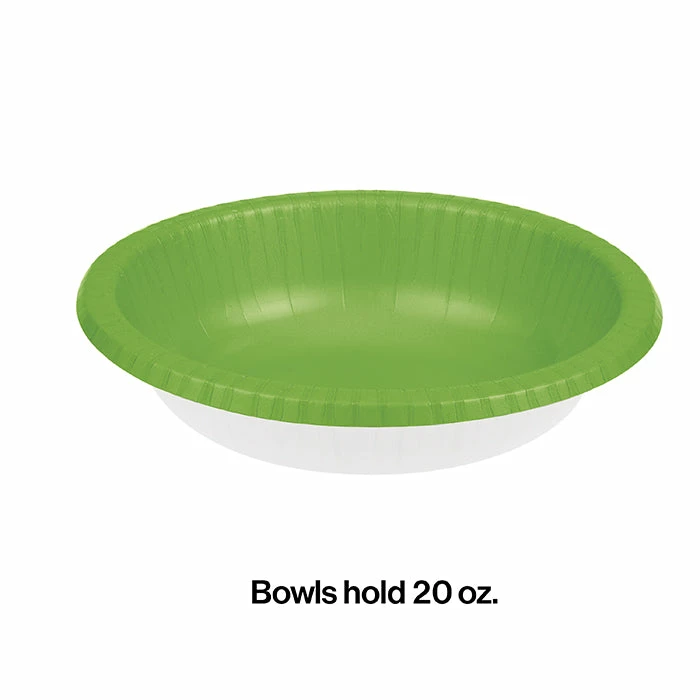 Details: Serve up tasty summer treats in our Fresh Lime Paper Bowls. Constructed of heavyweight paper, the bowls are perfect for serving snacks, salads, and desserts at baby showers, bridal showers, fiestas, and luaus. Combine the fresh lime bowls with tableware in coordinating colors like mimosa and orange for a vibrant display. For this price, you get one package containing (20) Fresh Lime Paper Bowls 20 Oz. Approximate Dimensions: 7.25 in x 7.25 in x 1.5 in