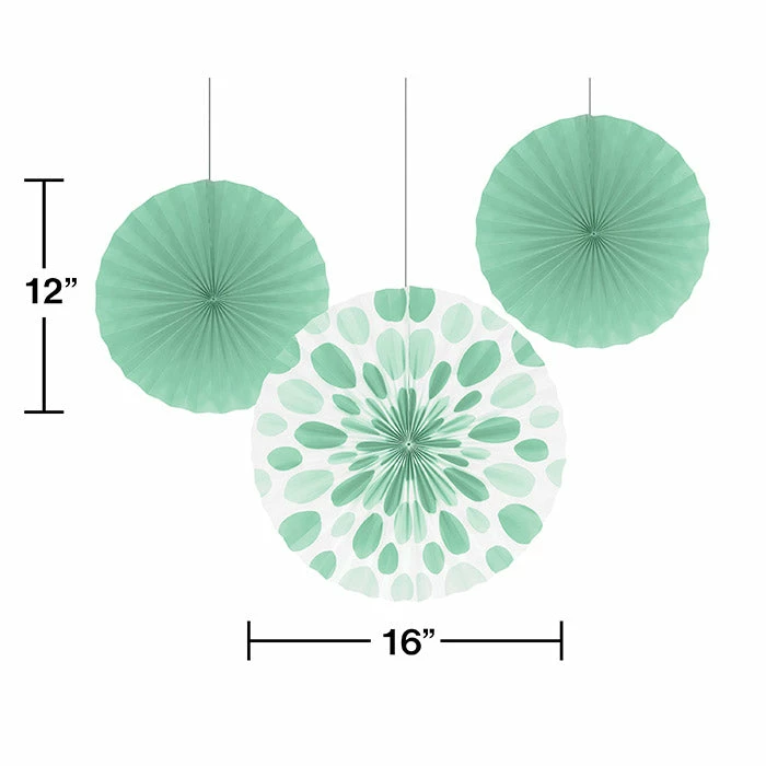Fresh Mint Dots Fans Pr 16 inch and 12 inch (18ct) – Your bulk discount buy gets you 3 per package and 6 package(s) per case for this price!