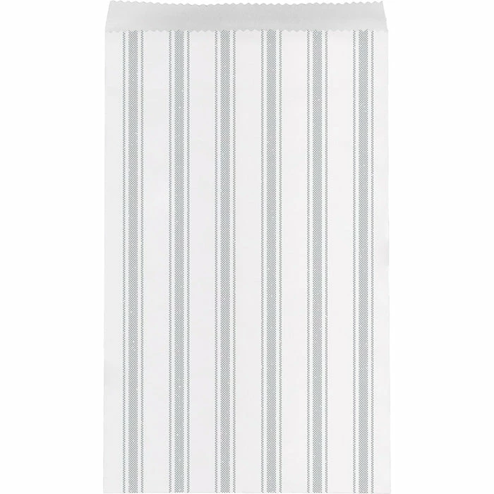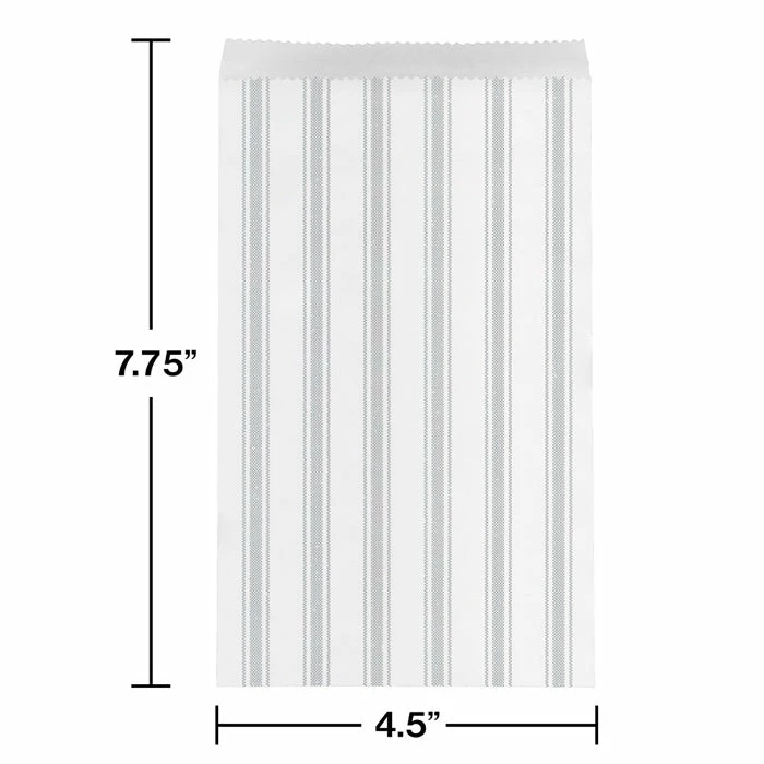 Send your guests home with something to remember with these Gray Ticking Stripe Paper Treat Bags. Featuring an elegant gray and white stripe design these treat bags are perfect for filling with any small treats or goodies. Measuring 7.75″ x 4.5″ these paper treat bags can be paired with any other Ticking Stripe party supplies. With wholesale pricing and bulk quantities our Gray Ticking Stripe Paper Treat Bags 120 ct are perfect for event planners caterers and home hostesses alike.. Size: 7.75″ x 4.5″. Material: Paper