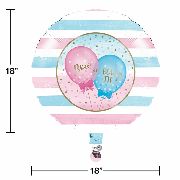 Details: Keep the question floating above everyone’s head with the Gender Reveal Balloons Mylar Balloon. This foil party balloon measures 18″ when inflated and has a border of alternating pink, white and blue stripes. In the center is a blue and pink background covered in confetti and a pink balloon that says “Bow or” and a blue balloon that says “Bow Tie?”. This metallic balloon can be coordinated with any of our other Gender Reveal Balloons party supplies. With discount pricing, our Gender Reveal Balloons Mylar Balloons are perfect for event planners, caterers, and home hostesses alike. You get one Gender Reveal Balloons Metallic Balloon 18″ for this price. Approximate Dimensions: 18 in