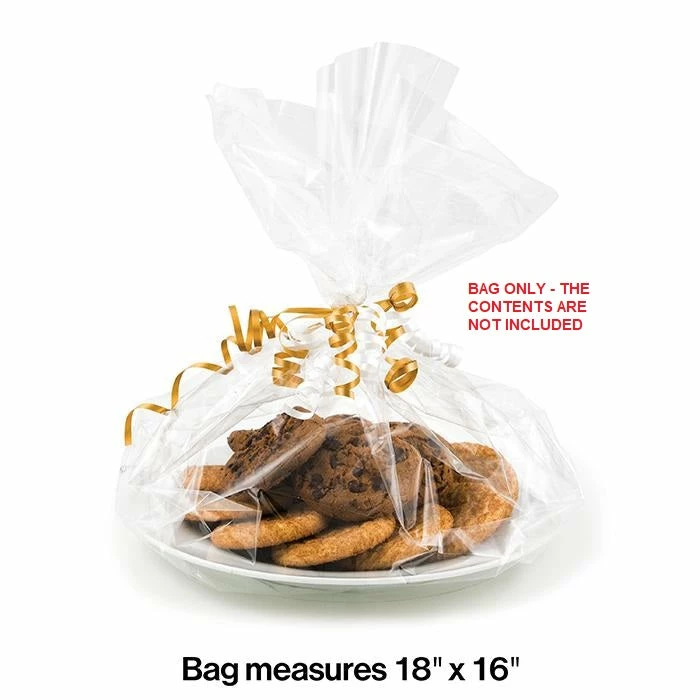 Details: Bag only. Basket and contents shown as example and are not included. Come prepared to wrap, package, and cover all your party treats and snacks with this Small Clear Basket Bag. This plastic clear bag is able to keep your treats fresh and also keep them looking fresh! These party supplies are a must when planning for any celebration. With discount pricing, our Small Clear Basket Bags are perfect for event planners, caterers, and home hostesses alike. For this price, you get one package containing (6) Small Clear Basket Bags. Approximate Dimensions: 18 in x 16 in