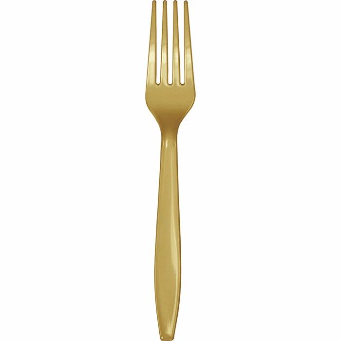 Details: Add glamour and style to party tables with our wholesale Glittering Gold Plastic Forks. Use this gold plastic cutlery to incorporate an enchanting shimmer to any buffet or dining table. Stylish and sturdy, these budget-friendly disposable gold forks offer exceptional quality, a beautiful design and the eco-friendly advantage of being recyclable. Perfect for event planners, caterers and savvy party hosts, these heavy duty plastic forks complement our other disposable gold cutlery and partyware. For this price, you get one package containing (24) Glittering Gold Plastic Forks. Approximate Dimensions: 7 in