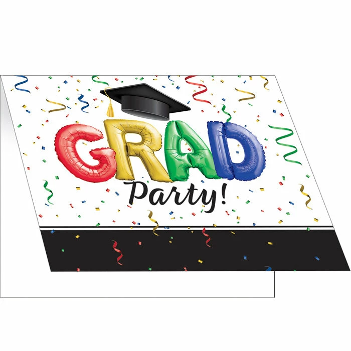 Details: Invite your guests to the party of a lifetime with these #1 Grad Invitations! Featuring a colorful confetti background with the phrase “Grad Party” these invitations are the perfect way to get your guests excited for the big day! Measuring 5″ x 4″ these invitations pair well with any other #1 Grad party supplies. With discount pricing and great quality our #1 Grad Invitations are perfect for event planners caterers and home hostesses alike. Approximate Size: 4″ x 5″. Material: Paper