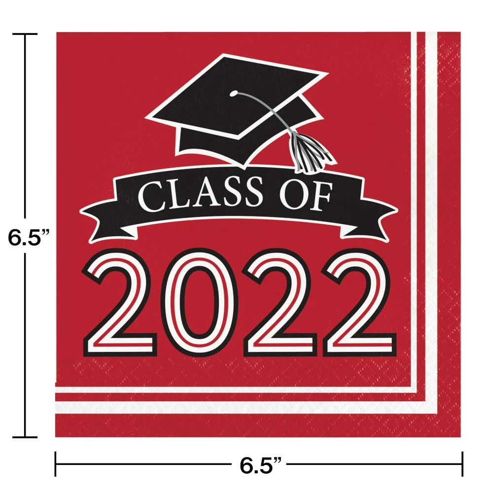 Details: Throw an unforgettable graduation celebration with these Class of 2022 Classic Red Napkins. Featuring a vibrant red napkin with “Class of 2022″ centered in the middle, these napkins are sure to bring your party to life. Measuring 6.5” and sold in packs of 36, these napkins can be paired with any other graduation party supplies. Our Class of 2022 Classic Red Luncheon Napkins are perfect for event planners, caterers, and home hostesses alike.