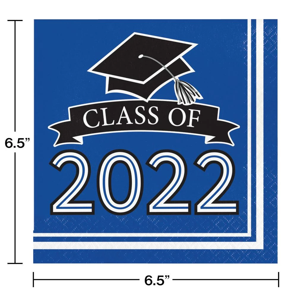 Details: Graduation is a huge accomplishment, make your grad feel extra special when you use these Class of 2022 Cobalt Blue Napkins. Featuring a sophisticated design with “Class of 2022″ centered in the middle, these napkins are the perfect thing to tie your party together. Measuring 6.5” and sold in packs of 36, these napkins can be paired with any other graduation party supplies. Our Class of 2022 Cobalt Blue Luncheon Napkins are perfect for event planners, caterers, and home hostesses alike.