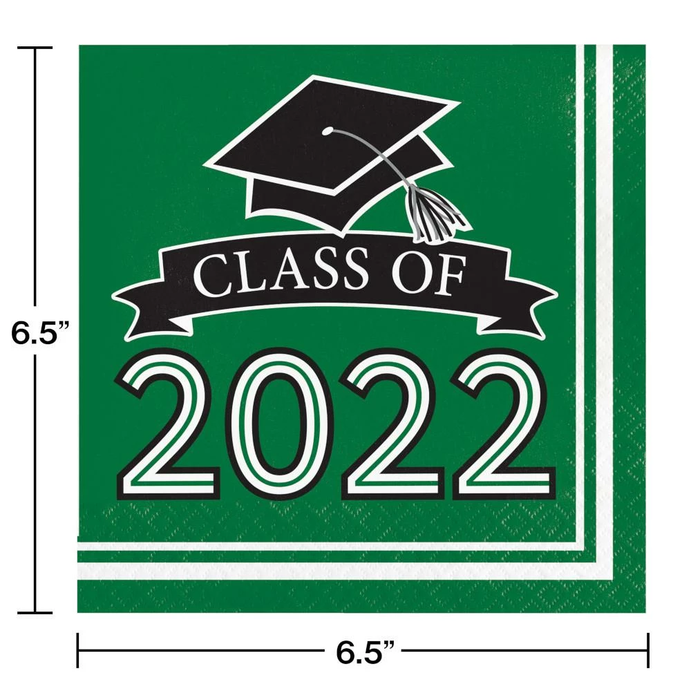 Details: Add the perfect accessory to your party tables with these Class of 2022 Emerald Green Napkins. Featuring an elegant green color with “Class of 2022″ centered in the middle, these napkins are the perfect way to set your party tables. Measuring 6.5” and sold in packs of 36, these napkins can be paired with any other graduation party supplies. Our Class of 2022 Emerald Green Luncheon Napkins are perfect for event planners, caterers, and home hostesses alike.