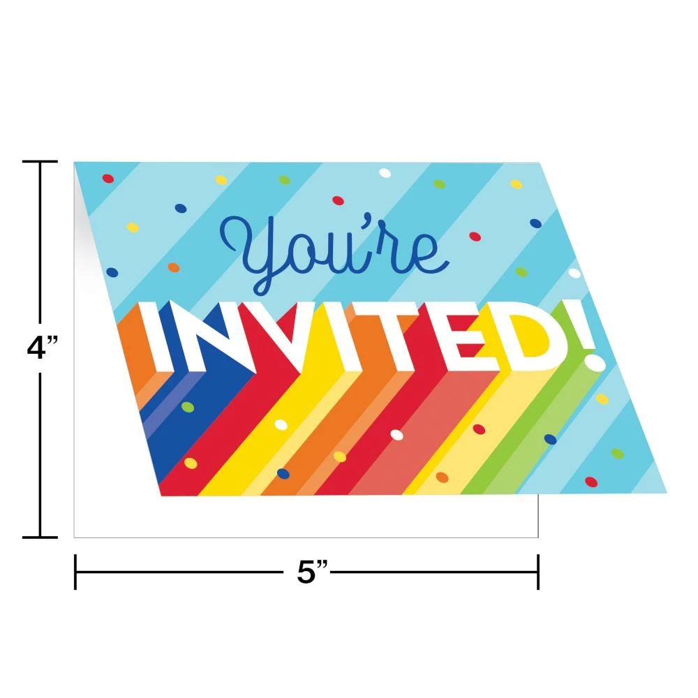 Details: Invite all the special people in your life who helped you along the way when you use the Rainbow Grad Invitations. These paper cards measure 5″ x 4″ and feature confetti and the words “You’re Invited” with a rainbow theme. The inside of the card is blank with space for your special message. Sold in packs of 8, these paper invitations coordinate with all Rainbow Grad party supplies. Save more on party decorations, party favors and party supplies at PartyDecorations.com!. Material: Paper. Approximate Size/Dimensions (inches): 4 x 5.