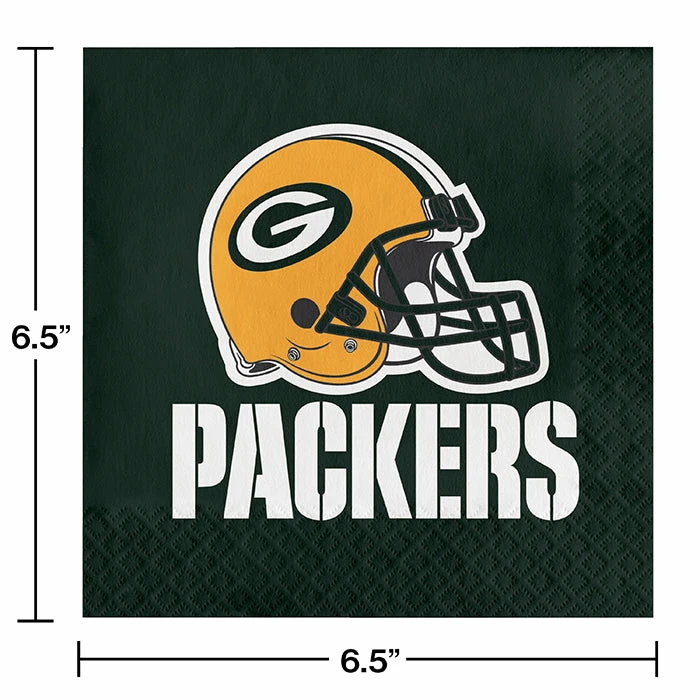 Details: Get Packers fans set up with game day fare served on officially licensed NFL party supplies. Green Bay Packers Luncheon Napkins have the image of the team helmet with gold accents and the name “Packers” in white text. The 2-ply lunch napkins are perfect for use with table settings or on a buffet for meal service. Packers inspired napkins coordinate with solid color party supplies in the team colors and are disposable. Measuring 6.375 inches x 6.375 inches with a quarter-fold design, paper napkins are sold 16 per package. For this price, you get one package containing (16) Green Bay Packers Napkins. Approximate Dimensions: 6.4 in x 6.4 in