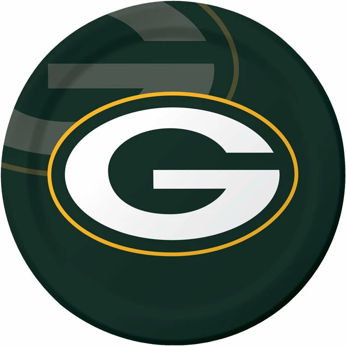Details: Patrons can cheer for their favorite team while enjoying game day fare served on officially licensed NFL tableware. Green Bay Packers Dinner Plates show bold team spirit with the team’s “G” logo featuring gold and white accents on a green background. Constructed from heavyweight paperboard, the paper plates can be used for meal service at a variety of events and pair easily with other Packers tableware as well as solid color party supplies. Measuring 8.75 in diameter, the plates are sold in retail-ready packaging of 8 each. For this price, you get one package containing (8) Green Bay Packers Paper Plates. Approximate Dimensions: 8.75 in x 8.75 in