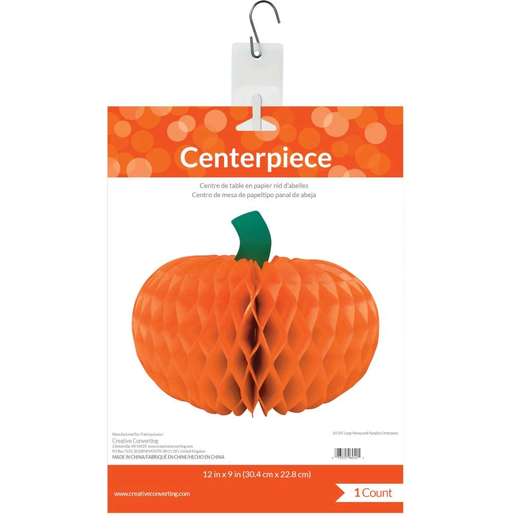 Details: This honeycomb tissue Large Pumpkin Centerpiece will look awesome at your Halloween tables! These are great as a centerpiece or decoration anywhere around the house for any Halloween party or any fall/October theme party you may have in mind. These are great on their own but would look even better along with the other decorations, accessories and costumes available in our store! With discount pricing, our Large Pumpkin Centerpieces are perfect for event planners, caterers, and home hostesses alike. You get one Halloween Honeycomb Centerpiece, 12″ Pumpkin for this price. Approximate Dimensions: 12.25 in x 12.25 in x 8 in