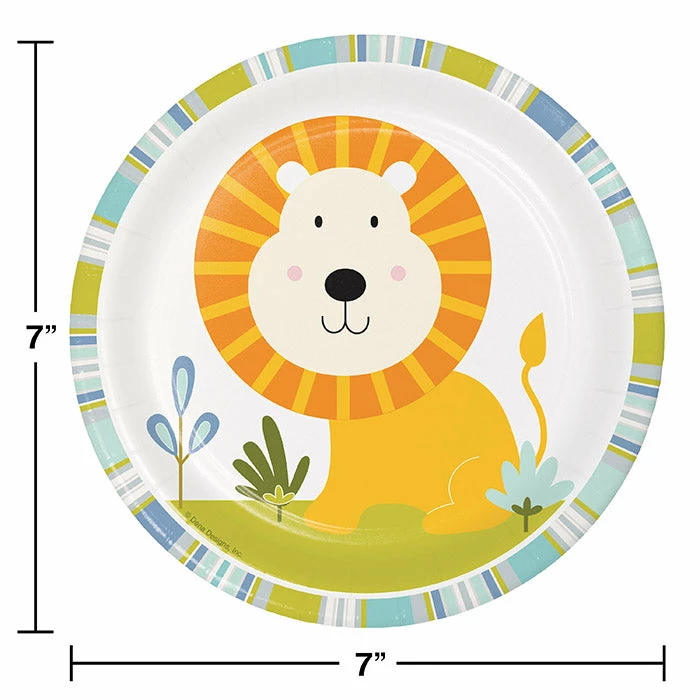 Details: Serve all baby shower attendees scrumptious snacks with these Happy Jungle Lion Dessert Plates. These Sturdy Style cake plates are ideal for serving desserts, cake, and candies at the big celebration. These 7″ paper plates coordinate perfectly with other Happy Jungle theme tableware and decorations. With discount pricing, our Happi Jungle Lion Dessert Plates are perfect for event planners, caterers, and home hostesses alike. For this price, you get one package containing (8) Happy Jungle Dessert Plates, Lion. Approximate Dimensions: 6.875 in x 6.875 in