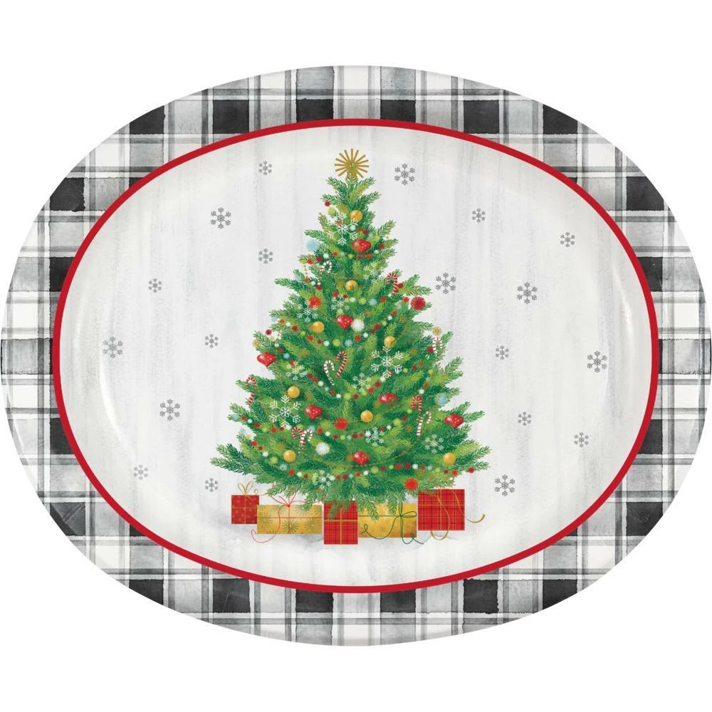Details: Our Holiday Tree Oval Platter, 8 ct will make a great addition to your party!  The Holiday Christmas Tree Oval Paper Plates are the perfect way for your guests to fill their plates with all your holiday delicacies. These sturdy oval paper plates measure 10″ x 12″ and feature a decorated Christmas Tree with a green, red, yellow, black and white theme. Sold in packs of 8, these disposable paper plates coordinate with all Holiday Christmas Tree party supplies . Our Holiday Christmas Tree Oval Paper Plates 8 ct are perfect for event planners, caterers, and home hostesses alike.