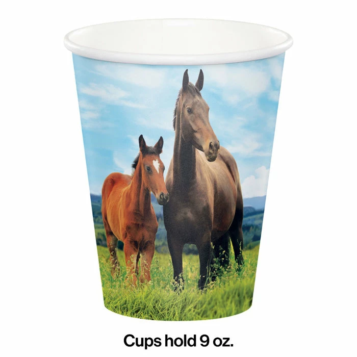 Details: Serve up a hot or cold beverage with these Wild Horse Cups! Featuring a wild horse running through a beautiful natural landscape these cups are the perfect addition to your celebration. Holding 9 oz. these cups pair well with any other Wild Horse birthday party supplies. With discount pricing and great quality our Wild Horse Cups are perfect for event planners caterers and home hostesses alike. Approximate Size: 9 oz. Material: Heavyweight Paperboard