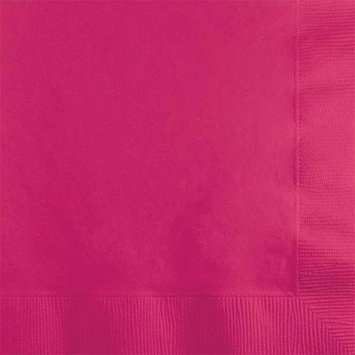 Details: The versatile drink napkin is an essential supply for any celebration or catered event, and the Hot Magenta Beverage Napkins add superior quality and brilliant color. Each 2-ply paper napkin measures 4.938 inches x 4.938 inches and is sold at a discount price. 50 napkins per package. The bright pink color is perfect for multiple occasions; reunions, birthdays, weddings and more. Stack the napkins near the dessert service or drink bar, or place them next to bowls of treats and candies to be used for holding a handful of snacks. There is always a use for these napkins! The Hot Magenta Beverage Napkins are packaged in quantities of 50 each. For this price, you get one package containing (50) Hot Magenta Beverage Napkin 2Ply. Approximate Dimensions: 5 in x 5 in