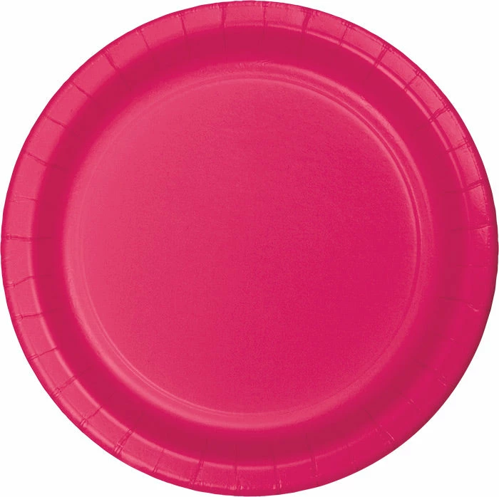 Details: Decorate the table with brilliant color and classy style at your catered events or gatherings with the Hot Magenta Dinner Plates. Each package contains 24 round paper plates that measure 8.75 inches across. The sturdy plates are perfect to use for pot luck meals, elegant entrees served at receptions, or a buffet service at a reunion party. The bright pink is a delightful color that complements many celebrations and can always be used as a base color for events. Coordinate this plate with matching printed theme products for a stunning display. The Hot Magenta Dinner Plates are packaged in quantities of 24 each. For this price, you get one package containing (24) Hot Magenta Pink Paper Plates. Approximate Dimensions: 8.75 in x 8.75 in