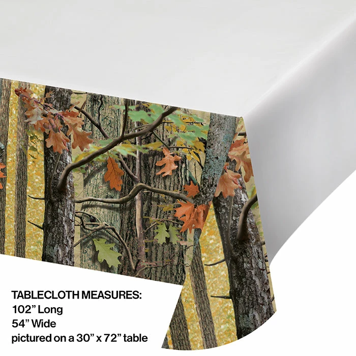 Details: Display all of your food and treats on the Hunting Camo Plastic table cover. The 54″ x 102″ table covering features an ivory top and a camo pattern around the border. The table cover can be mixed and matched with other Hunting Camo party supplies. With discount pricing, our Hunting Camo Plastic table covers are perfect for event planners, caterers, and home hostesses alike. You get one Hunting Camo Tablecover Plastic 54″ X 102″ for this price. Approximate Dimensions: 102 in x 54 in