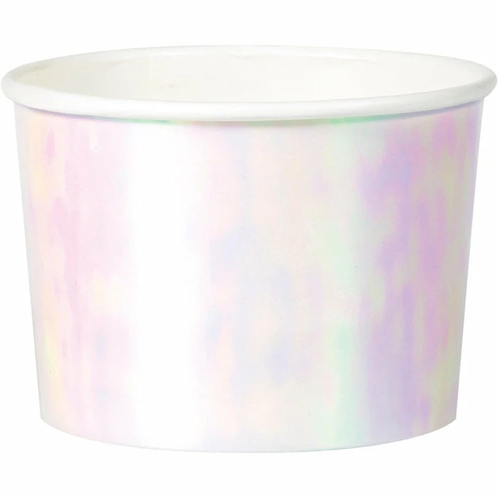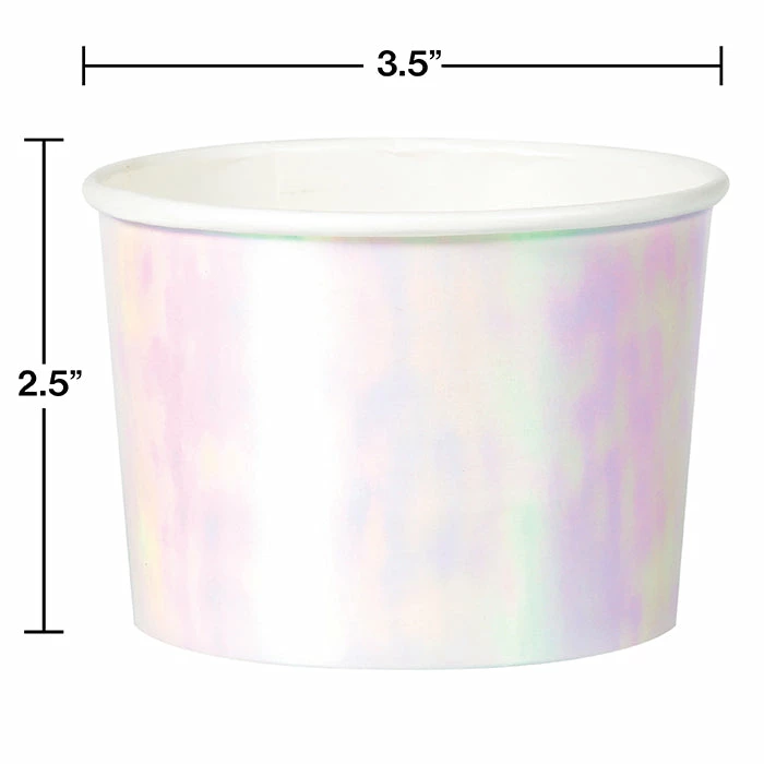 Details: Bring trendy vibes to your party with these Iridescent Party Treat Cups. Featuring an all over iridescent design, these cups are perfect for filling with small treats and goodies. Measuring 3.5″ x 2.5″, these paper cups pair perfectly with any other Iridescent party supplies for a complete look. With discount pricing, our Iridescent Party Treat Cups are perfect for event planners, caterers, and home hostesses alike. For this price, you get one package containing (6) Iridescent Party Treat Cups. Approximate Dimensions: 3.5 in x 3.5 in x 2.5 in