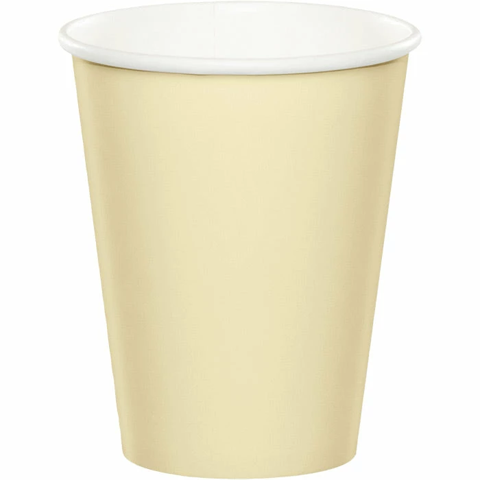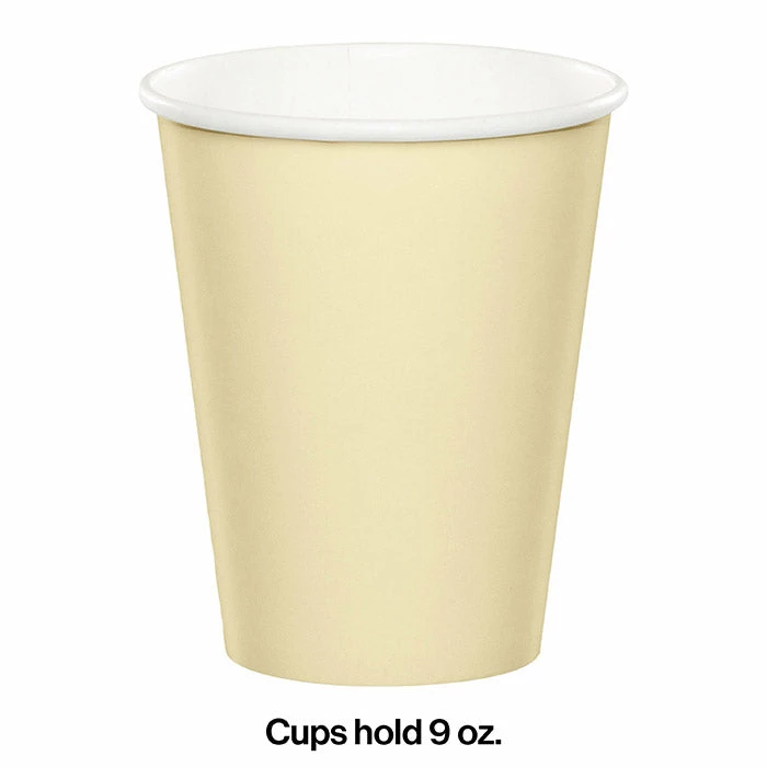 Details: Balance the decoration with charming style and neutral color at catered events or gatherings with the Ivory Hot & Cold Cups. Every package contains 24 sturdy paper cups in soft ivory that hold 9 ounces of hot or cold beverages. Place these cups next to the punch bowl or coffee dispenser, or put one at each place setting for guests to use. The ivory color is perfect for receptions, showers or reunions and the color complements multiple printed theme ensembles. The Ivory Hot & Cold Cups are sold in packages of 24. For this price, you get one package containing (24) Ivory Hot/Cold Paper Cups 9 Oz. Approximate Dimensions: 3.75 in