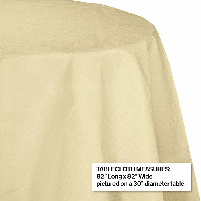 Details: Decorate the tables at larger gatherings or catered events in elegance and style with the Ivory Octy-Round Paper table covers. Each table covers measures 82 inches in diameter and is made from high-quality 2-ply paper with a waterproof backing to protect tables. The cover will fit tables 36 inches in diameter and larger and it can be thrown away when the event is over. The ivory color is perfect as a backdrop for theme ensemble products used at receptions, weddings or graduations. The Ivory Octy-Round Paper table cover is sold at a discount price. You get one Ivory Tablecover, Octy Round 82″ Polylined Tissue for this price. Approximate Dimensions: 82 in x 82 in