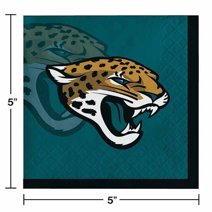 Details: Take football game nights to the next level of fandom with our Jacksonville Jaguars Beverage Napkins. Sold in each small napkin displays the Jaguar logo on an iconic blue background. Made for quick and easy cleanup these beverage napkins are functional and fun. Fans can coordinate napkins with Jaguar plates and cups for an unforgettable tailgate party. Approximate Size: 9.875″ x 9.875″. Material: 2-Ply Tissue