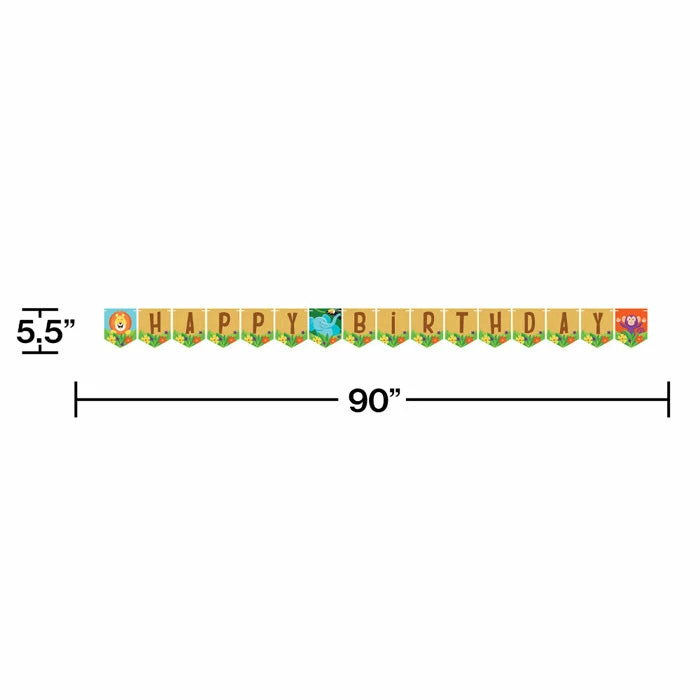 Details: Say Happy Birthday in a big way with this Jungle Safari Banner. Featuring the phrase “Happy Birthday” with playful jungle animals this banner is sure to grab your guest’s attention. Measuring 90″ x 5.5″ this banner can be paired with any other Jungle Safari birthday party supplies. With discount pricing and great quality our Jungle Safari Banners are perfect for event planners caterers and home hostesses alike. Approximate Size: 90″ x 5.5″. Material: Paper Foil