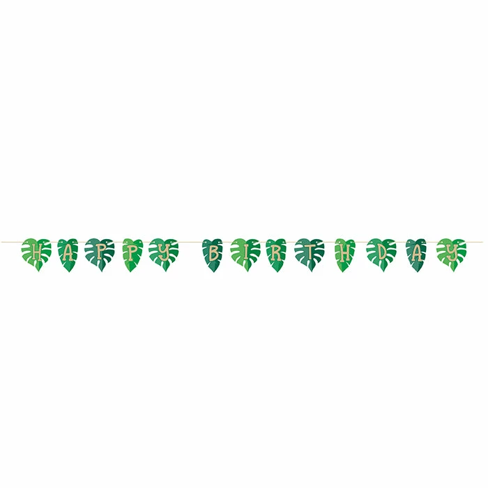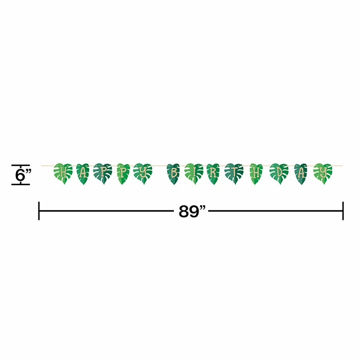 Details: Spice up your celebration with this Jungle Leaf Happy Birthday Banner. Featuring an exotic leaf design with the phrase “Happy Birthday”, this banner is the perfect addition to your celebration. Measuring 6″x 89″ this banner can be paired with any other party supplies. Our Jungle Happy Birthday Banners are perfect for event planners, caterers, and home hostesses alike.