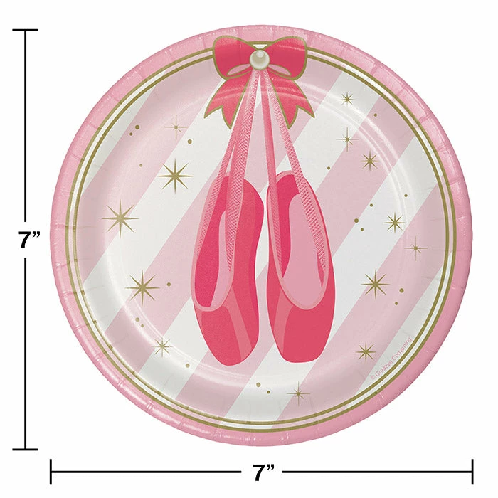 Details: Celebrate your little ballerina’s birthday with the beautiful Ballet Dessert Plates. The Sturdy Style cake plates are perfect for serving birthday treats and feature a pair of pretty pointe shoes. These dazzling plates can be combined with other party supplies from the Ballet collection. With discount pricing, our Ballet Dessert Plates are perfect for event planners, caterers, and home hostesses alike. For this price, you get one package containing (8) Ballet Dessert Plates. Approximate Dimensions: 6.875 in x 6.875 in