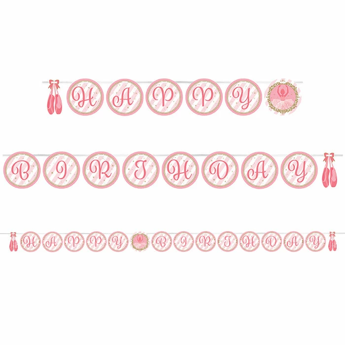 Details: Provide a dazzling atmosphere that is sure to put a smile on the birthday girl’s face when you decorate with the Ballet Ribbon Banner. Measuring 8.5 feet long, the shaped ribbon banner features the message “Happy Birthday” in pink. These party enhancers are perfect for your little ballerinas’ birthday celebration. With discount pricing, our Ballet Ribbon Banners are perfect for event planners, caterers, and home hostesses alike. You get one Ballet Ribbon Banner for this price. Approximate Dimensions: 102 in x 6 in