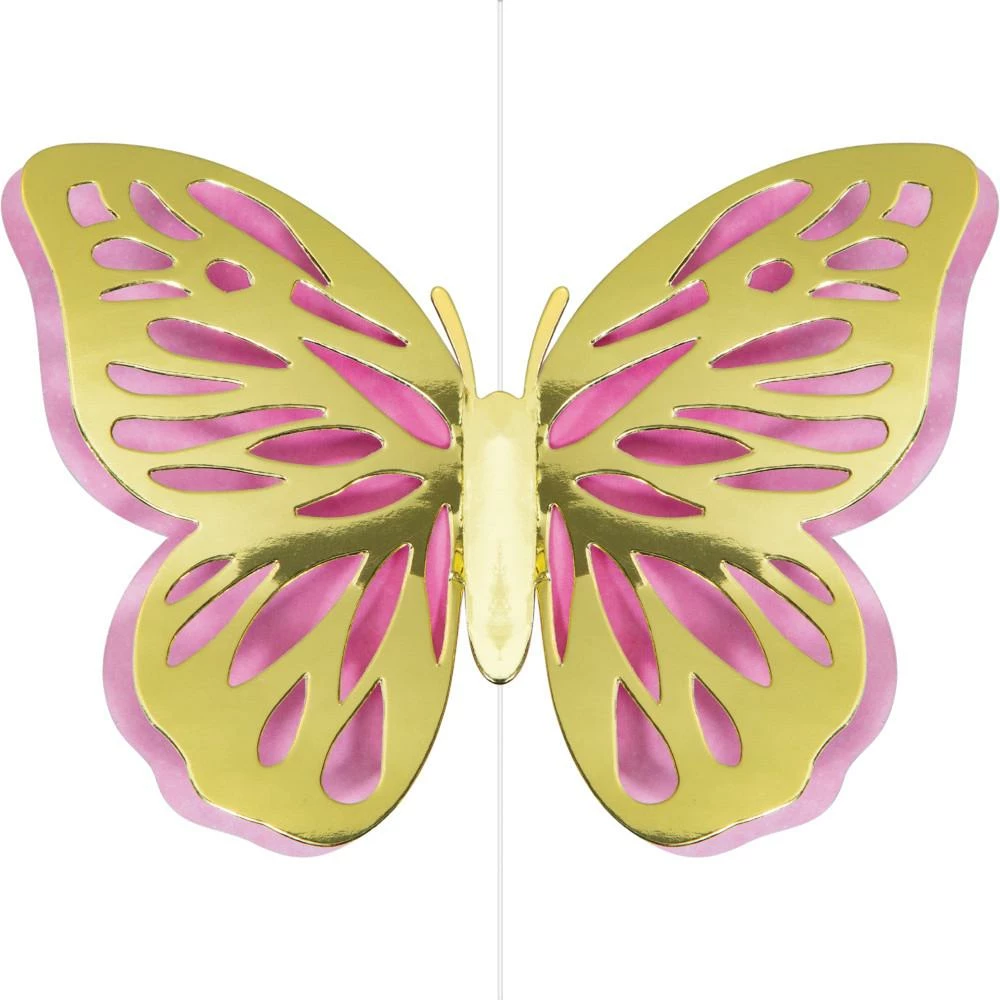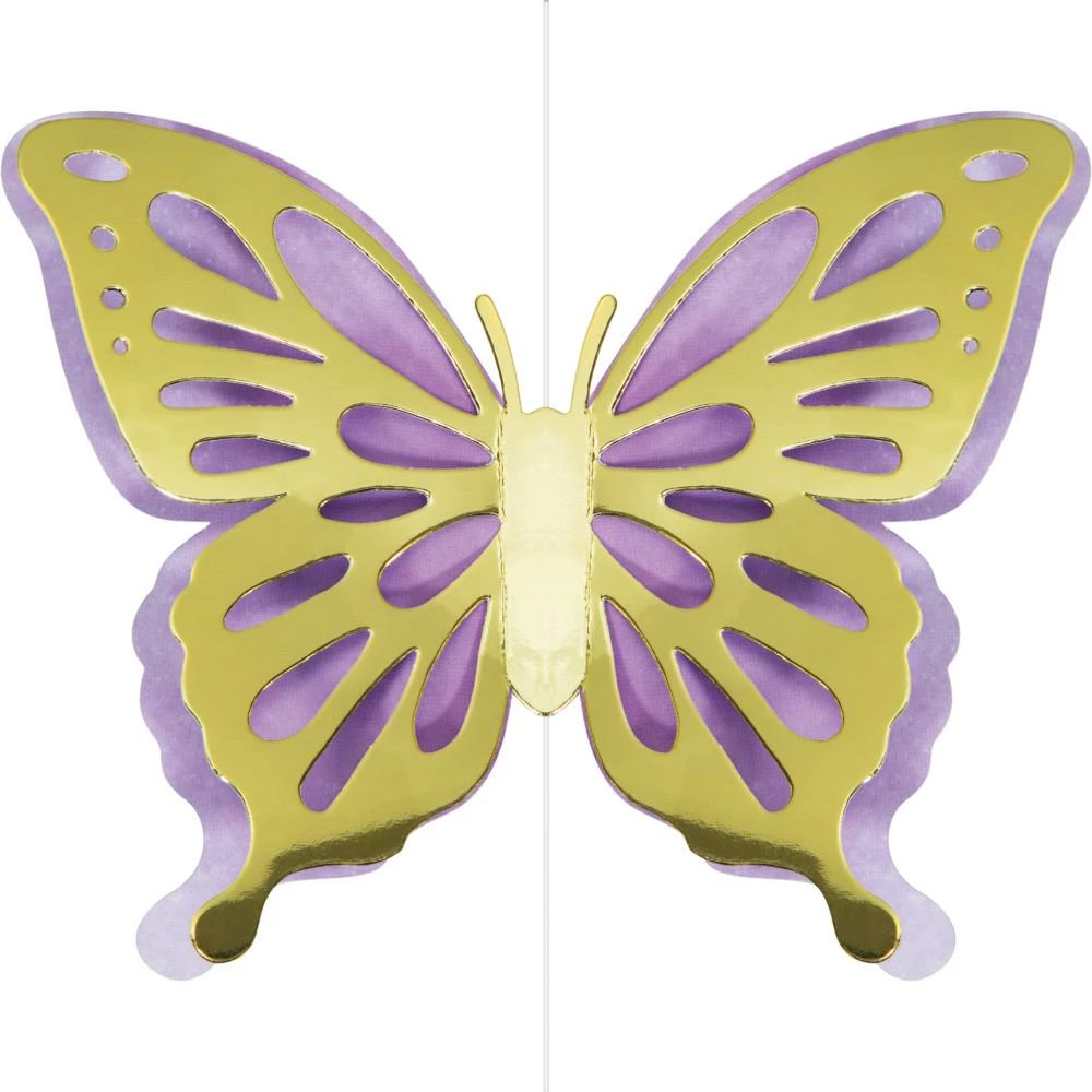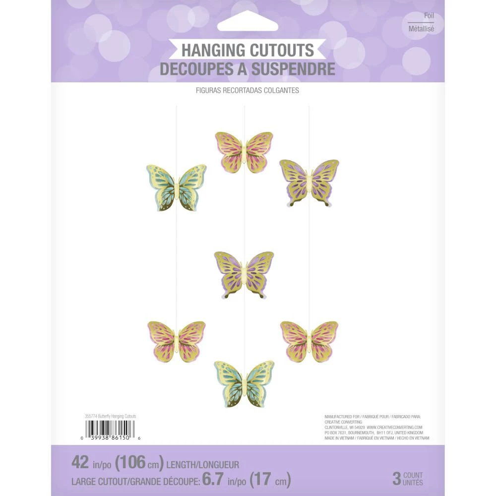 Details: Add fluttering, flying butterflies to your party space with help from our Golden Butterfly Hanging Cutouts. Each 42″ x 6″ hanging cutout features two or three gold foil-accented butterflies suspended with string. Hang them above the cake or gift table for a pretty focal point at the celebration. Our Golden Butterfly Hanging Cutouts include 36 hanging cutouts, which coordinate with our other Golden Butterfly party supplies. Start planning your gorgeous butterfly party today! Our Golden Butterfly Hanging Cutouts are perfect for event planners, caterers, and home hostesses alike.