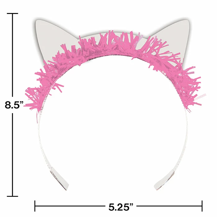Details: Add some style to your upcoming party with the Cat Party Tiara. Classic Pink foil makes up the cat ear portion as well as a Shimmering Silver base. These go great with our other Cat Party items. With discount pricing, our Cat Party Tiaras are perfect for event planners, caterers, and home hostesses alike. For this price, you get one package containing (8) Cat Party Tiaras. Approximate Dimensions: 5.25 in x 8.5 in