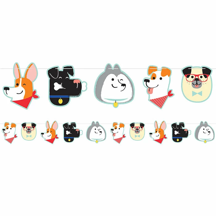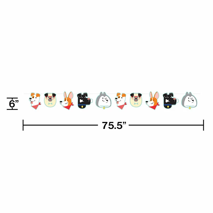 Details: Add some extra decoration to your celebration with the Dog Party Banner. It features a repeating pattern of different smiling dogs that are ready to help your guests have fun. This item measures 6″ x 75.5″ and can be coordinated with any of our other Dog Party party supplies. With discount pricing and great quality our Dog Party Banners are perfect for event planners caterers and home hostesses alike. Approximate Size: 75.5″ x 6″. Material: Paper