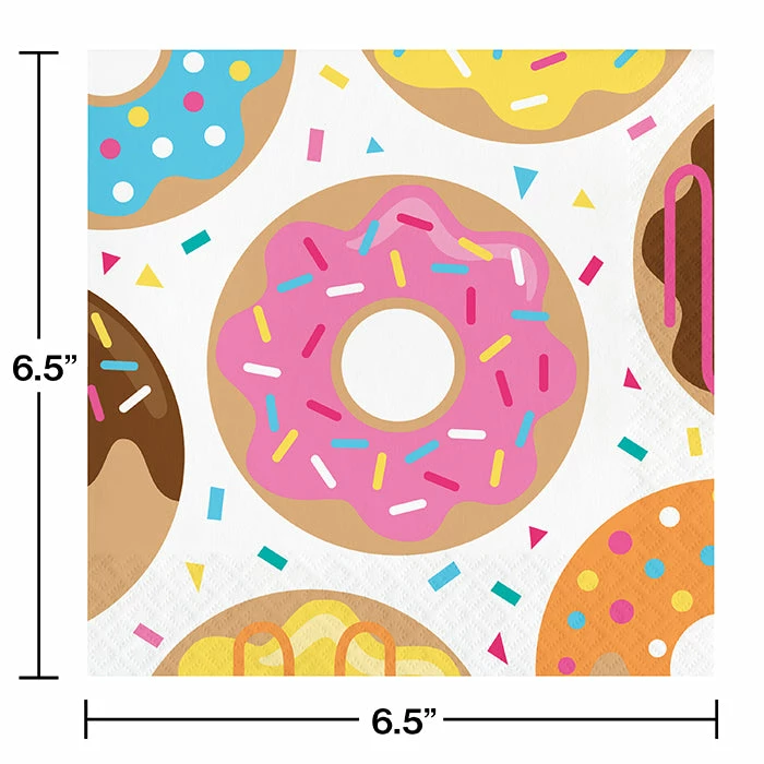 Details: Birthdays only come once a year, so indulge in sweet treats with these Donut Time Napkins. The paper napkin measures 6.5″ and displays a variety of colorful donuts topped off with rainbow sprinkles and will have your mouth watering. The napkins can be mixed and matched with other Donut Time party supplies. With discount pricing, our Donut Time Luncheon Napkins are perfect for event planners, caterers, and home hostesses alike. For this price, you get one package containing (16) Donut Time Napkins. Approximate Dimensions: 6.4 in x 6.4 in