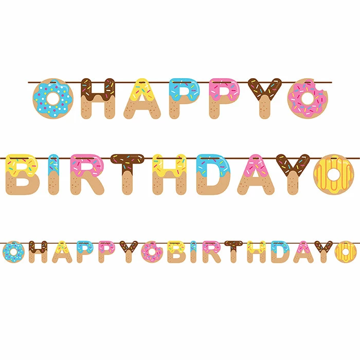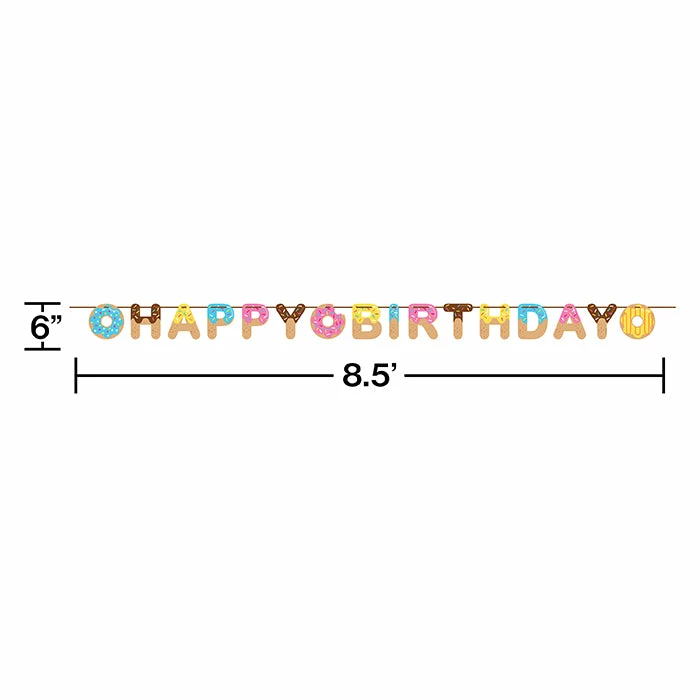 Details: Bring treats to the celebration with both birthday desserts and party decorations when you use the Donut Time Ribbon Banner. This hanging decoration includes large text reading “Happy Birthday” with icing and sprinkles across the letters. These ribbon banners can be hung over the party to provide a fun-filled atmosphere. With discount pricing, our Donut Time Ribbon Banners are perfect for event planners, caterers, and home hostesses alike. You get one Donut Time Ribbon Banner for this price. Approximate Dimensions: 102 in x 6 in