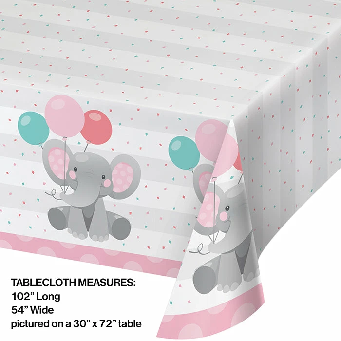 Details: Your daughter’s first birthday is a special occasion and should be remembered with the adorable Enchanting Elephants Girl Paper table cover. These paper tablecovers measure 54″ x 102″ and feature prints of cartoon elephants with a gray, white and pink theme. These paper table covers coordinate with all Enchanting Elephants Girl party supplies. Our Enchanting Elephants Girl Paper table covers are perfect for event planners, caterers, and home hostesses alike.