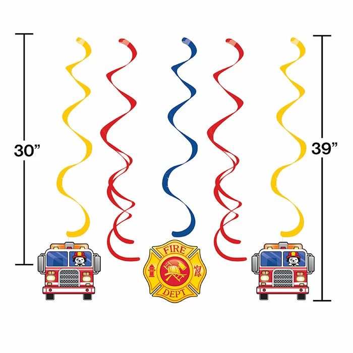 Details: Add extra decorations with the Fire Truck Swirl Decorations. There are five colored swirls with two having fire trucks at the bottom and one has a firefighter’s badge at the bottom. Three swirls measure 30″ and two measure 39″. These hanging cutouts are the perfect addition to our other Fire Truck party supplies. With discount pricing and great quality our Fire Truck Swirl Decorations are perfect for event planners caterers and home hostesses alike. Approximate Size: 5″ x 18″. Material: Paper Plastic