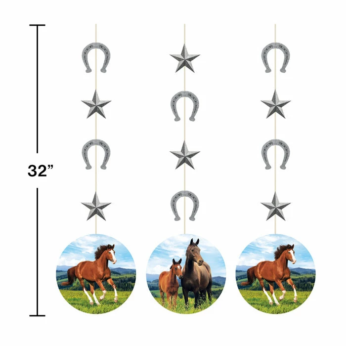 Details: Make decorating easy with these Wild Horse Hanging Decorations. Featuring a different wild horse on each paper cutout these decorations are perfect for completing your party theme. Measuring 32″ these hanging decorations can be paired with any other Wild Horse party supplies. With discount pricing and great quality our Wild Horse Hanging Decorations are perfect for event planners caterers and home hostesses alike. Approximate Size: 7″ x 32″. Material: Paper Polyester