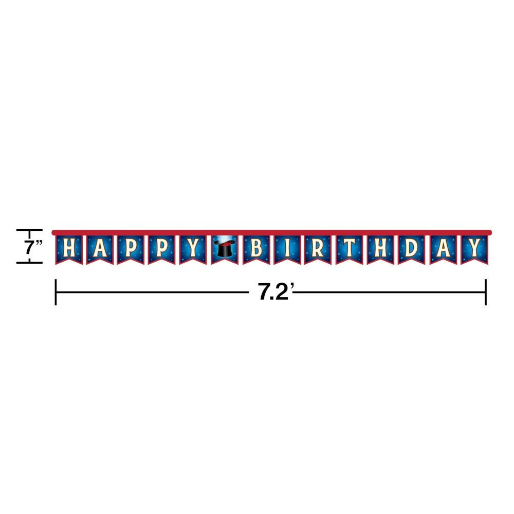 Use this (12ct) Magic Party Jointed Banner Large item along with our other Magic Party themed party supplies and decorations to ensure your birthday party is a blast! Your bulk discount buy gets you 1 per package and 12 package(s) per case for this price! Size is 7 inches by 7.2 feet.