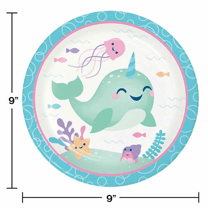 Details: Serve yummy treats at your narwhal-themed party with help from our Narwhal Party Paper Plates. These plates feature an adorable narwhal and other sea creature friends in pretty pastel hues. The plates measure 9″, perfect for serving a meal. Complete the look with our other Narwhal Party supplies. Our Narwhal Party Dinner Plates are perfect for event planners, caterers, and home hostesses alike.